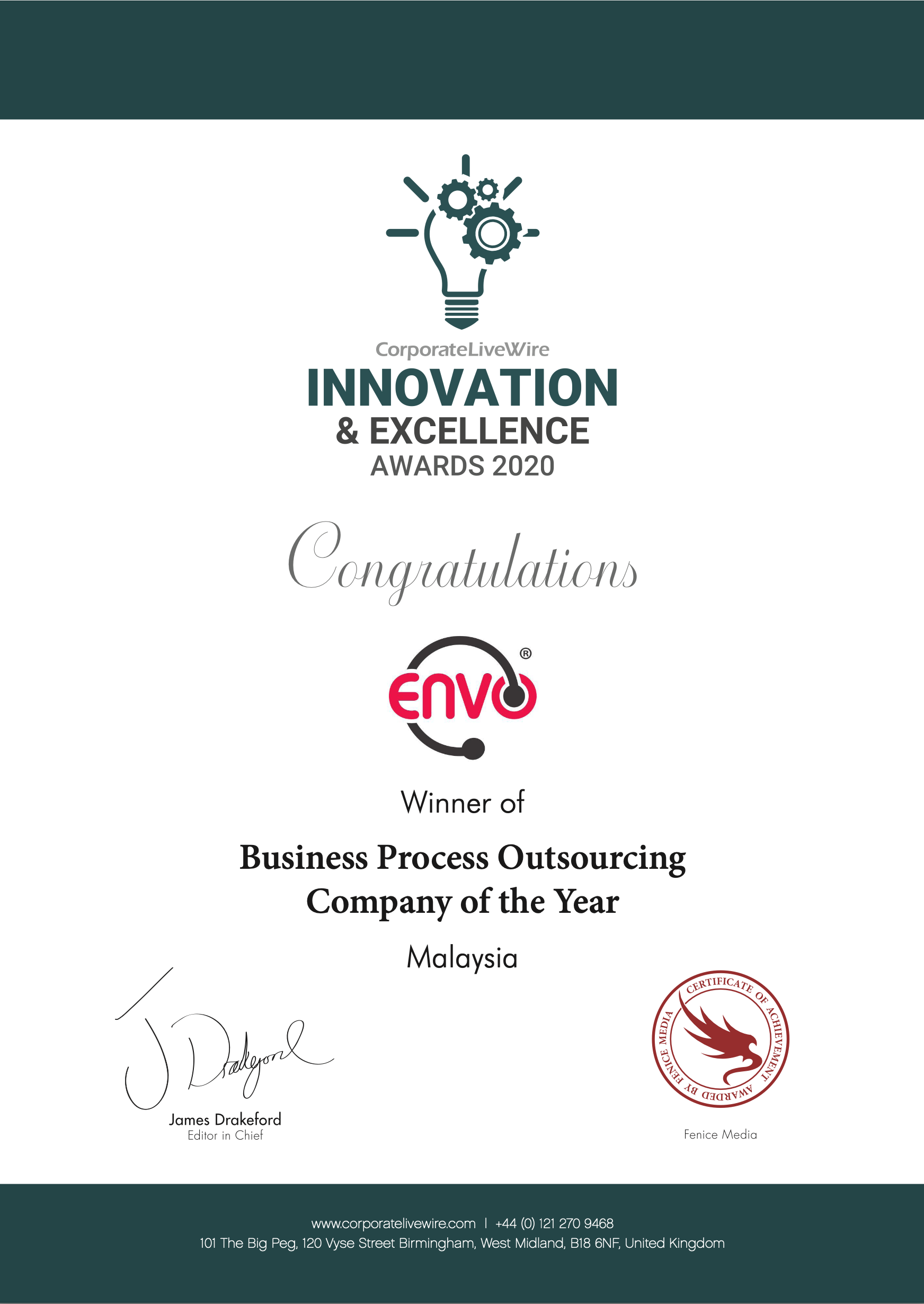 ENVO BPO is an award-winning, ISO 9001:2015 certified business process outsourcing provider in Malaysia, offering scalable, technology-driven solutions across industries. Recognised as Malaysia’s Top BPO Company (2023) and an SME 100 Award Winner, we specialise in customer service, lead generation, IT outsourcing, and more.